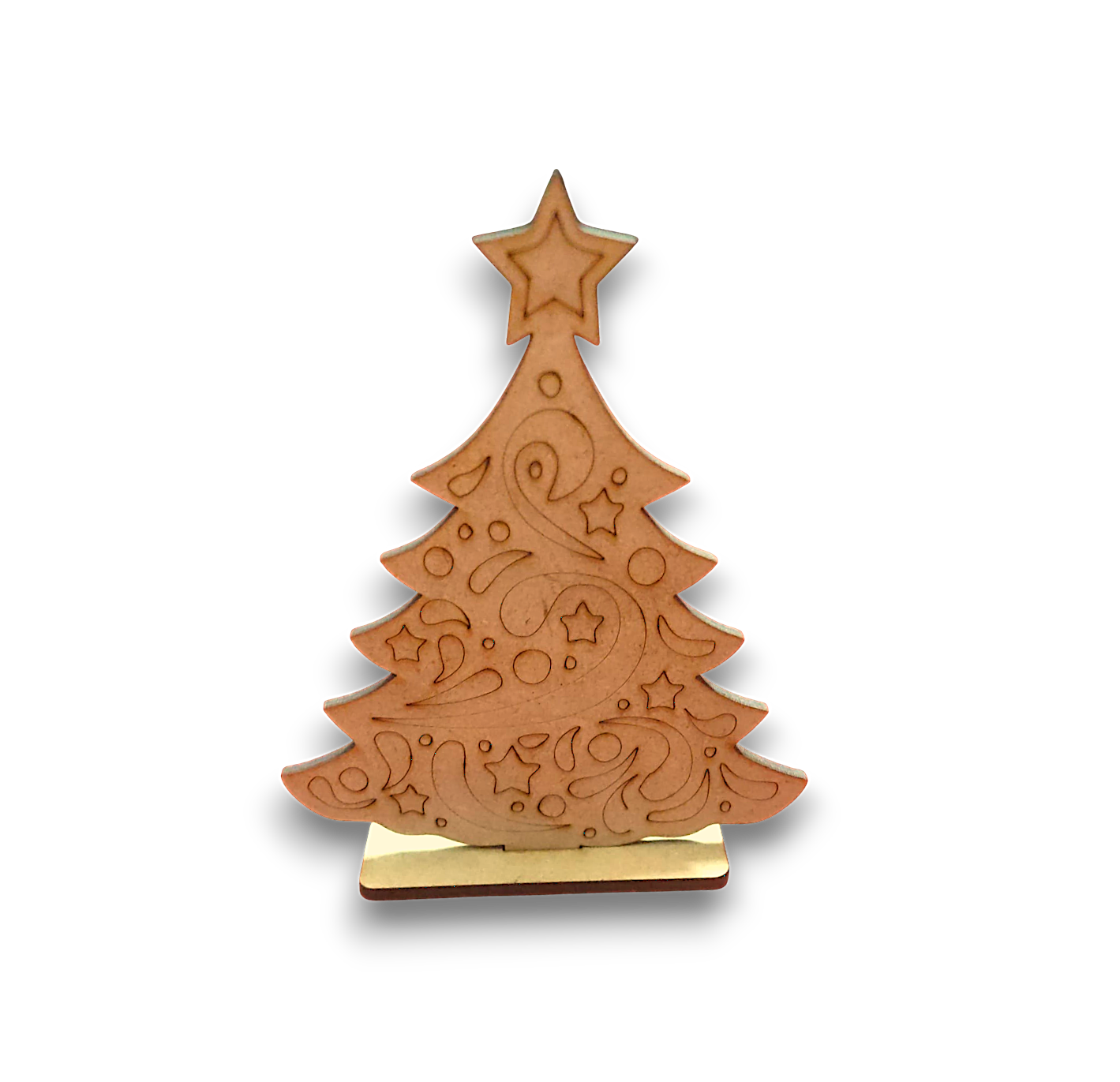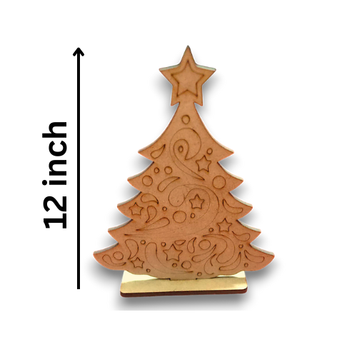 Bring the holiday spirit to life with this 12-inch MDF Christmas Tree Cutout Stand! Beautifully laser-cut with elegant patterns and a sturdy base, this tree is ideal for painting, decoupage, resin art, or festive table décor.
