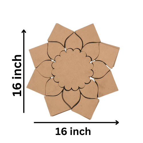 The pre-marked rangoli shape allows easy decoration with colors, stones, beads, mirrors, glitter, and paints, making it a perfect DIY project for festivals.