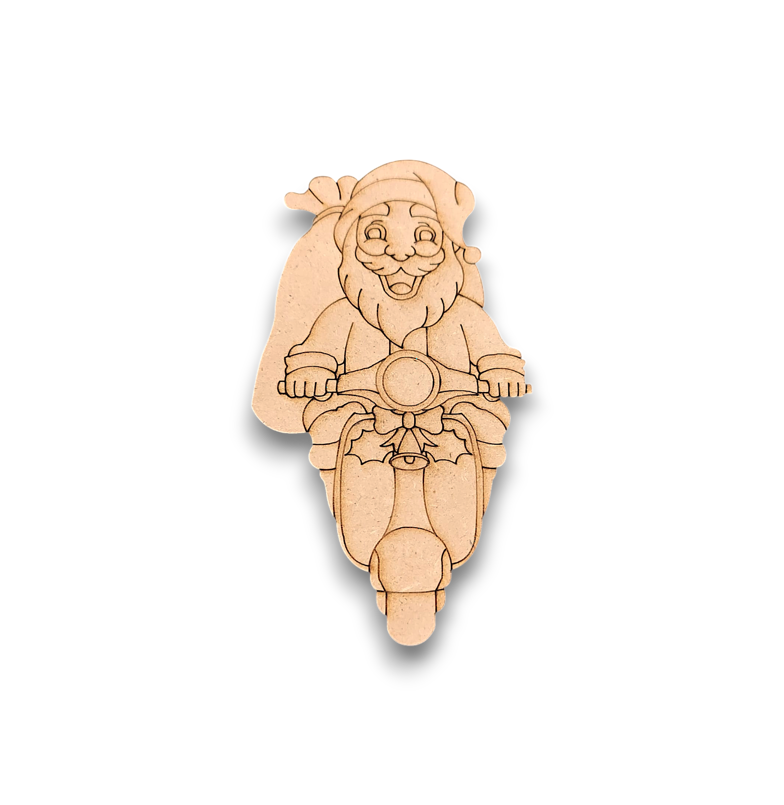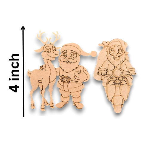 Set of 3 Christmas-themed MDF shapes (Santa, Reindeer & Santa on Scooter)