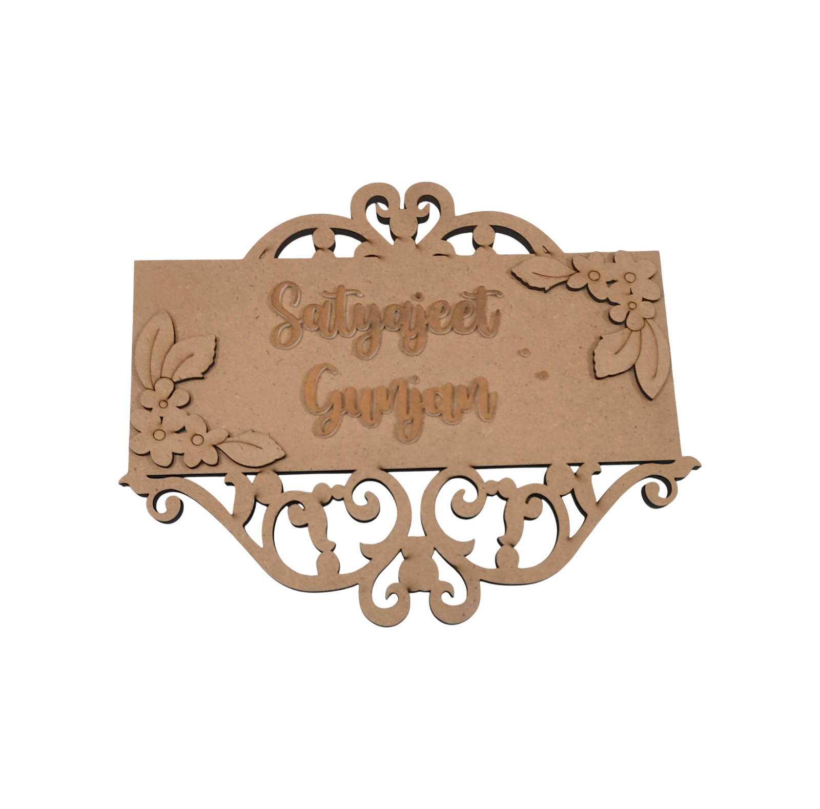 This Personalized MDF Name Plate is crafted from premium quality MDF with elegant floral and ornamental cutwork. The smooth surface allows easy painting, customization, and decoration as per your home décor theme. Perfect for home entrance, office name boards, room décor, or gifting. You can personalize it with names, paint with acrylic colors, add resin, or decorate with embellishments for a unique handmade look.