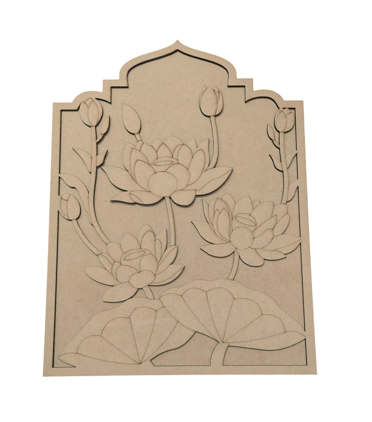 Apne ghar ki deewaron par kala aur sanskriti ka jaadu bikheriye is 3D Lotus Jharokha Panel ke saath. Isme ek shahi Jharokha frame ke andar khilte huye Kamal (Lotus) ke phoolon aur unki pattiyon ko bahut hi bariki se Relief Art (ubhri hui kala) ke roop mein dikhaya gaya hai.