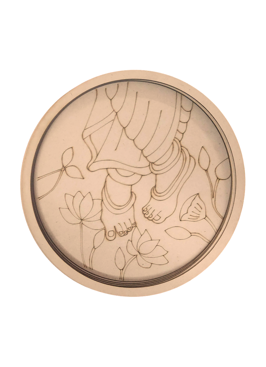 - Intricate 3D Detailing: The anklets (payal), the folds of the dhoti, and the delicate lotus petals are all laser-cut with extreme precision to create a 3D relief effect.