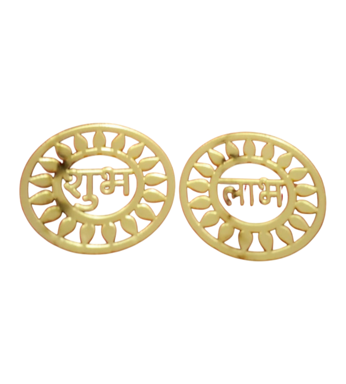 Bring positivity and blessings to your home with this beautifully crafted Golden Acrylic Shubh Labh Pair. Designed with an elegant round leaf border, this set is perfect for door decoration, pooja room décor, Diwali décor, shop entrance, temple decoration, and gifting.