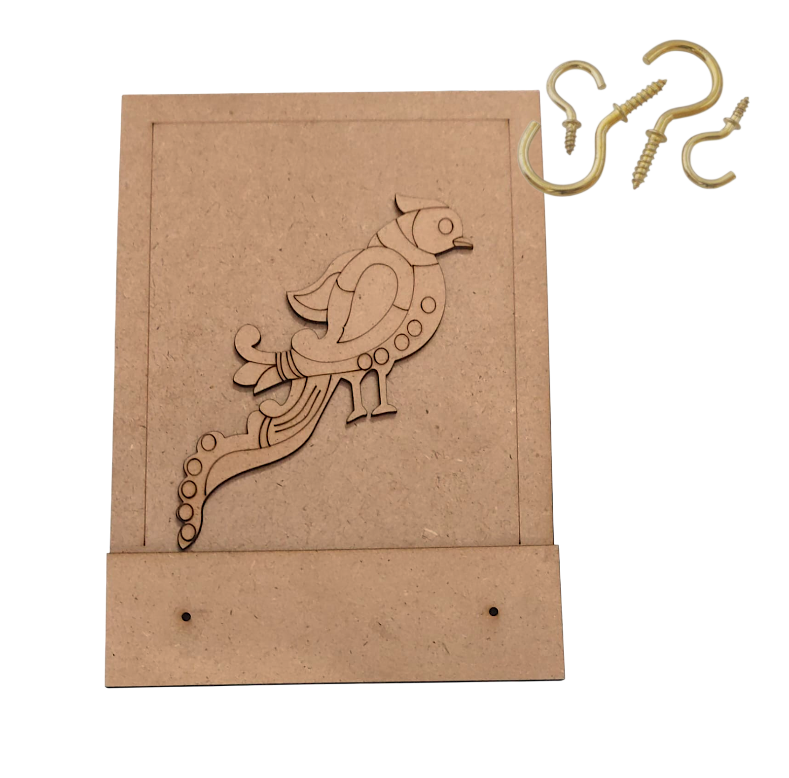 Elegant MDF Bird Key Holder featuring a beautifully laser-cut bird design. This decorative wall hanging is perfect for organizing keys while adding a charming touch to your home décor. The bottom section allows easy installation of hooks to hang keys, masks, or small accessories.