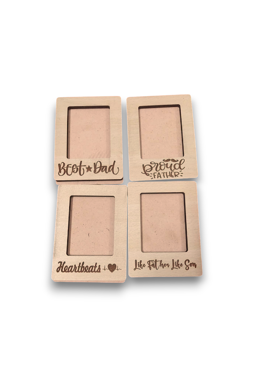 Beautiful MDF Father’s Day Photo Frame Set featuring engraved quotes like “Best Dad”, “Proud Father”, “Heartbeats”, and “Like Father Like Son”. These frames are perfect for inserting photos and creating personalized gifts. Made from premium quality MDF, the smooth surface is ideal for DIY painting, resin art, decoupage, and customization. Perfect for Father’s Day gifts, handmade crafts, scrapbooking, and home décor projects.