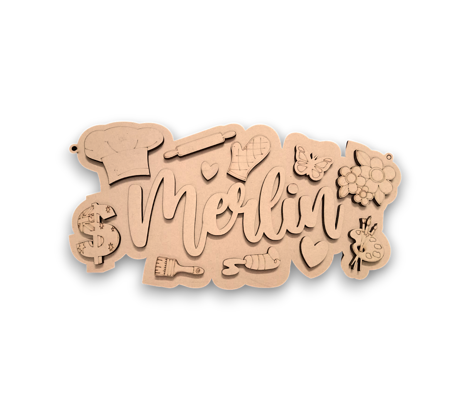 Design: Engraved with creative elements (chef hat, butterfly, flowers, paint palette, etc.)