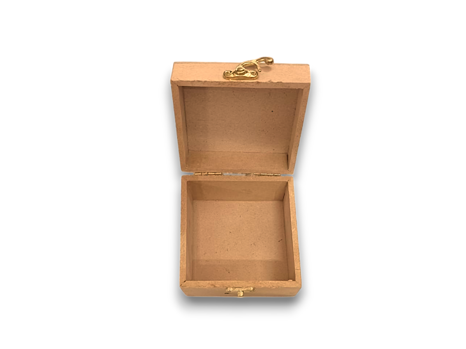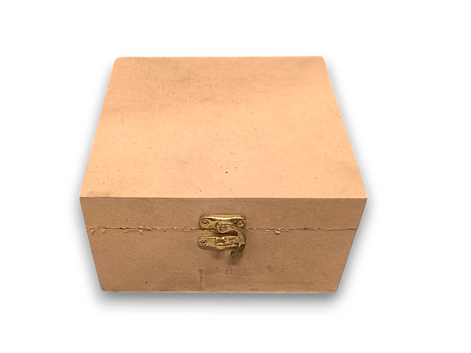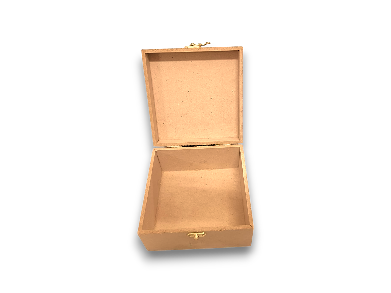 Yeh plain MDF wooden box ek strong aur elegant storage solution hai. Isme metal hinge aur front lock diya gaya hai, jo box ko secure aur durable banata hai. Raw MDF finish hone ki wajah se yeh painting, decoupage, resin art, name personalization jaise DIY projects ke liye perfect base hai.