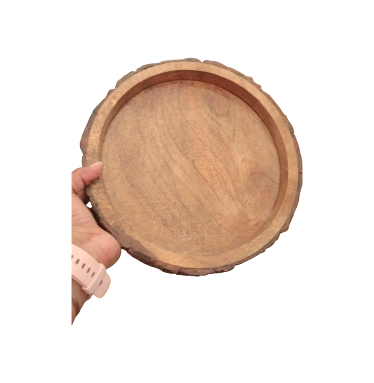 Bring a touch of nature to your home with this Rustic Wooden Slice Serving Tray. Crafted from real wood, this tray features a natural bark edge that enhances its raw and authentic look. The smooth inner surface is polished for safe and easy serving, while the outer rustic texture adds a unique charm.