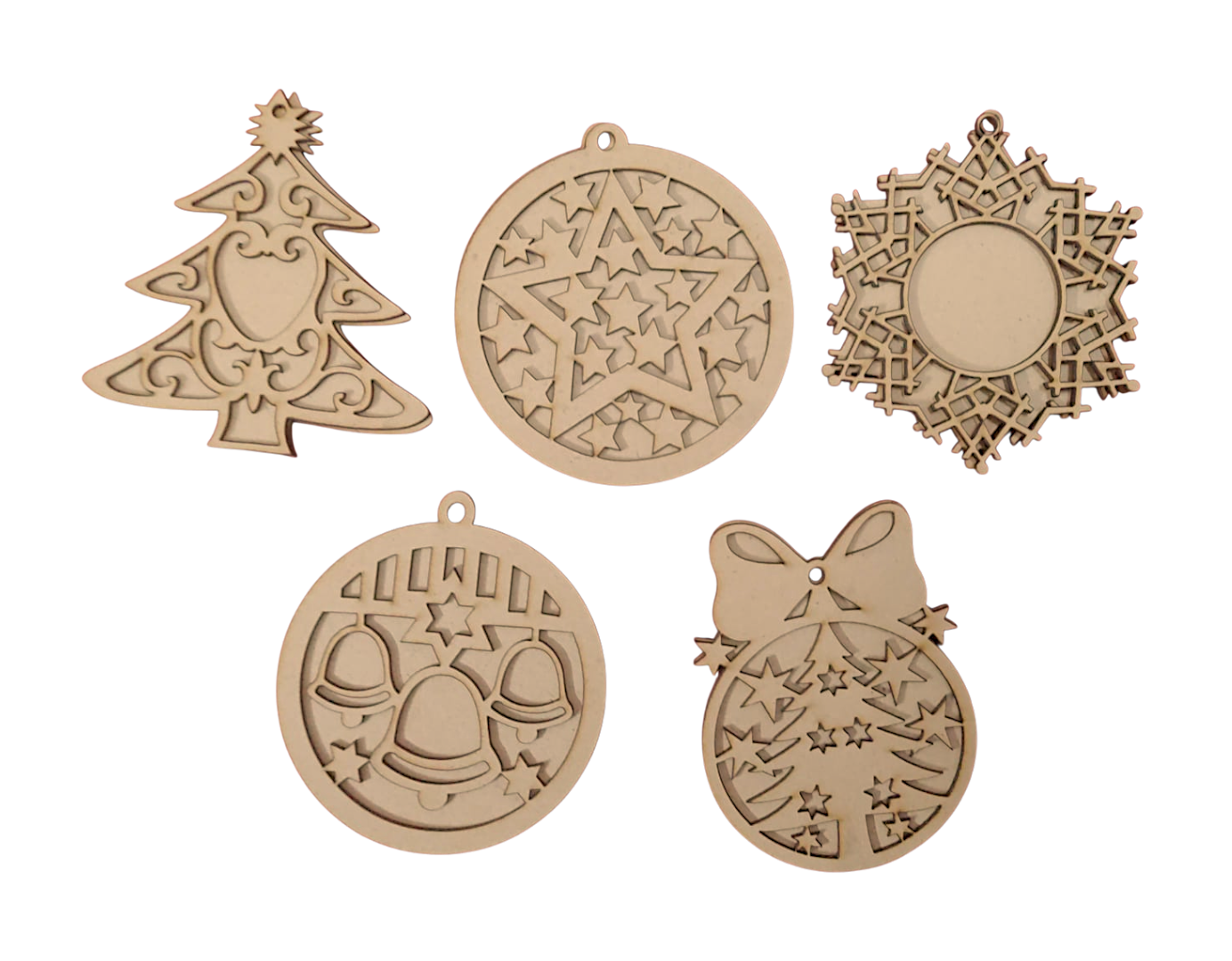 Set of 5 Wooden Christmas Hanging Ornaments – Laser Cut DIY Festive Decor