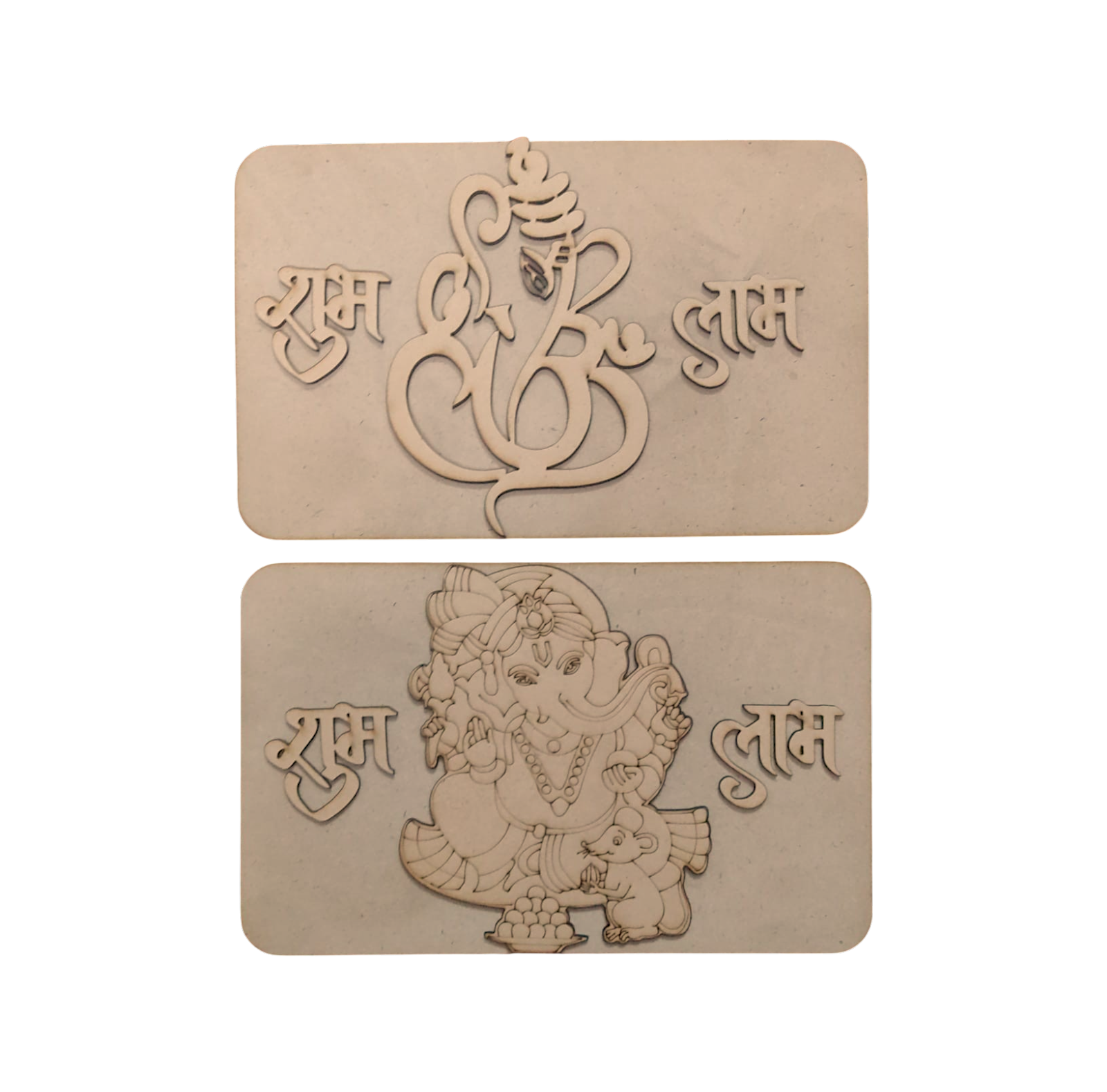 This Shubh Labh MDF Ganesh Wall Hanging set features beautifully laser-cut designs with Lord Ganesh and decorative “Shubh Labh” text. Made from premium MDF, the smooth surface is ideal for DIY painting, resin art, and festive decoration.