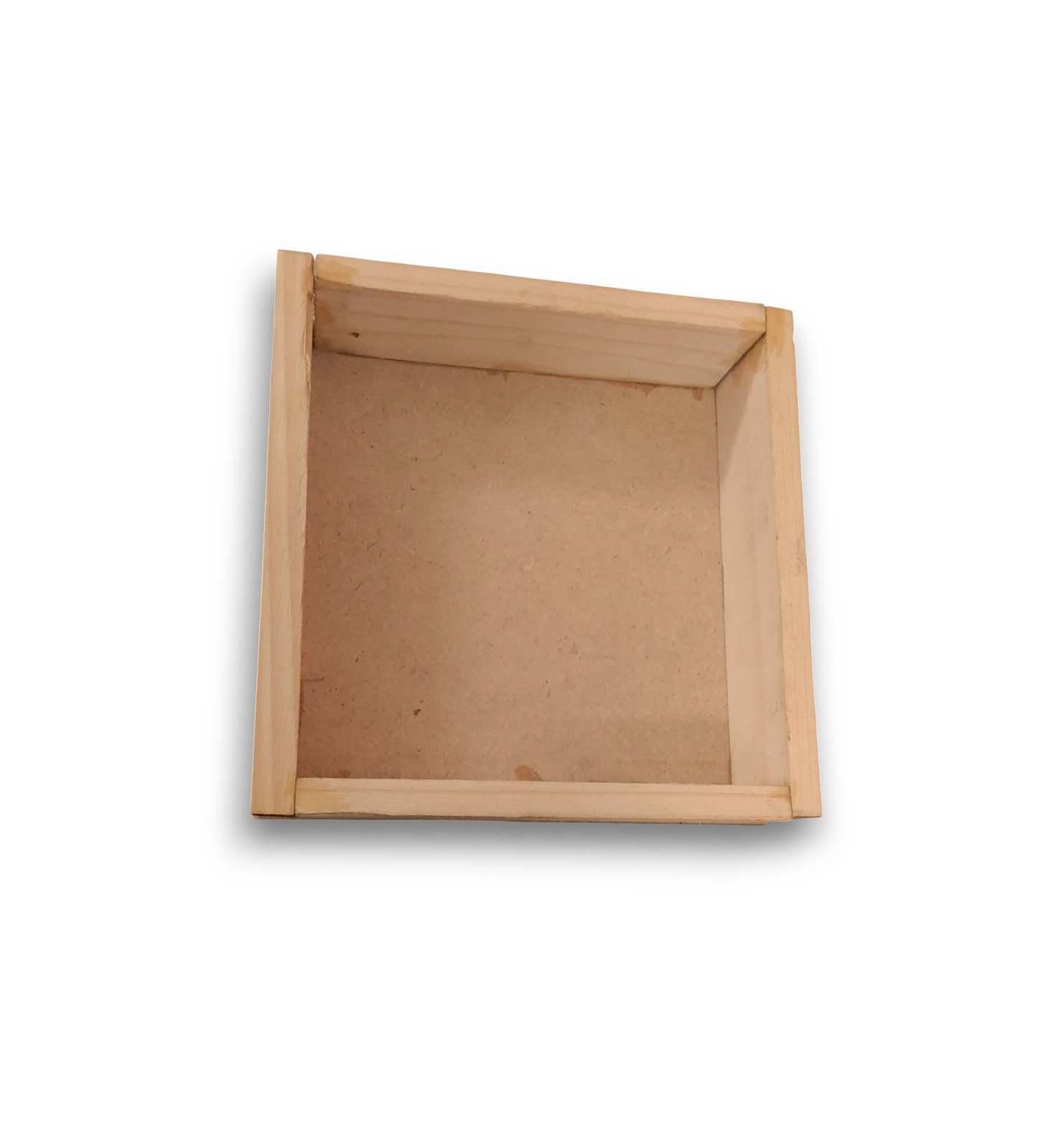 Yeh small size square MDF wooden tray natural wooden frame ke saath aata hai. Iska design open top hai jo DIY decoration, resin art, gift packing aur storage ke liye perfect hai. Plain finish hone ki wajah se ispar painting aur customization easily ho jaati hai.