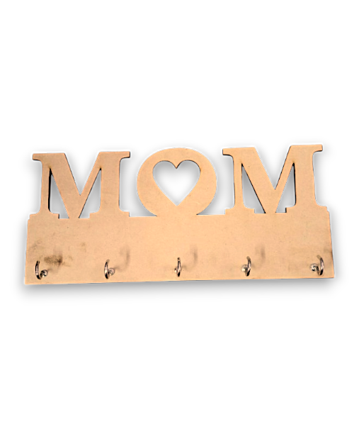 This Wooden MDF MOM Key Holder is a stylish and functional wall organizer designed to keep your essentials in one place. Featuring an attractive MOM text with heart cutout, it enhances home décor while offering practical storage.
