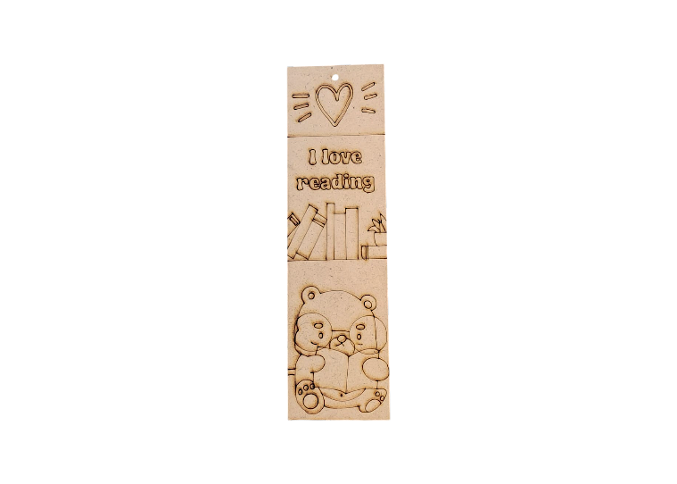 This Cute Teddy Wooden Bookmark is made from premium MDF wood and features a charming teddy bear design with the message “I Love Reading”. The detailed laser engraving gives it a clean and elegant look.